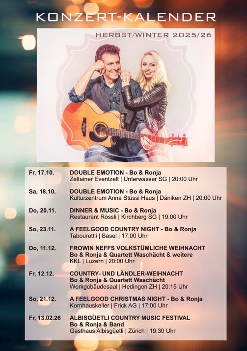 erfolgreiche Tourneen mit ca. 500 Konzerten führten Bo durch die ganze Schweiz und Deutschland.